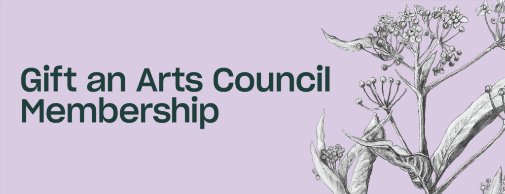 When you purchase a one-year membership for a loved one, friend, boss, teacher, or even yourself, you are giving a gift you will not find at Target or Amazon. Each recipient will receive a beautifully designed welcome card in the mail featuring hand-drawn illustrations of local flora created by Arts Council staff artists. Order by December 15th to ensure cards arrive in time for Christmas. This membership drive will run through January 1st, 2026, giving you plenty of time to share the gift of art with your family, friends, and colleagues.
