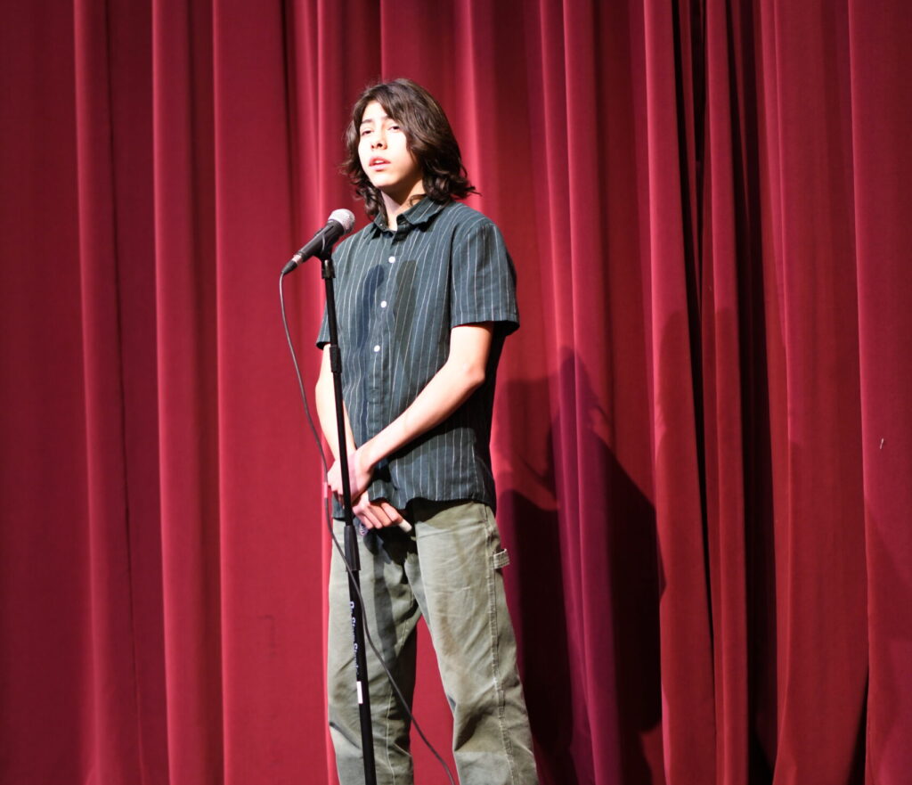 The winner of the 2024 County Champion title was Daniele Mattocks Turck, a Mariposa County High School Sophomore whose vibrant and nuanced performances of ‘What to say upon being asked to be friends’ by Julian Talamantez Brolaski, ‘And Soul’ By Eavan Boland and ‘A Poison Tree’ by William Blake scored very highly with the judges. Daniele moved on to compete in the California State final in Sacramento in March.