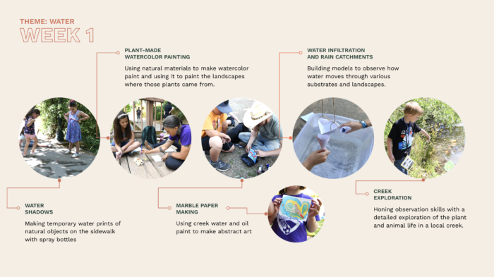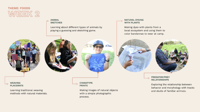 Our educators help students students’ develop a deep relationship to their local landscapes with experiential, inquiry based activities that weave together artistic and scientific practices. Each week is structured around thematic concepts, including watersheds, cultural histories, foods, habitat and more. Example activities include: