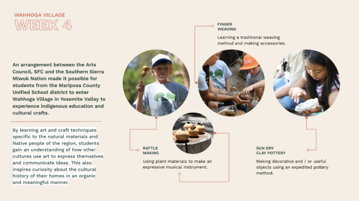 - A: It’s a place-based outdoor education program for students in grades TK-6th at Mariposa County Unified School District (MCUSD) and Sierra Foothill Charter School (SFCS). It’s a collaboration between the Mariposa County Arts Council, Sierra Foothill Conservancy, and MCUSD/SFCS Expanded Learning Opportunity Program.